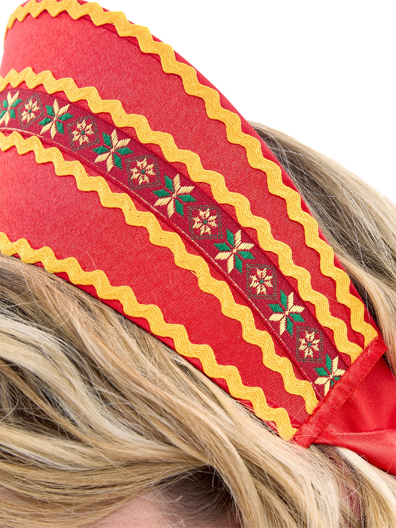 Кокошник "Радуга" красный с красной тесьмой - изысканный и элегантный головной убор, идеально подходящий для взрослых женщин. Изготовлен из качественной красной тесьмы, добавляющей шарма и роскоши. Вдохновлен национальной историей и русскими народными традициями, этот аксессуар подчеркнет вашу индивидуальность и прекрасно дополнит образ княгини. Производитель - Россия. Привнесите долю ретро и красоты в вашу жизнь с этим прекрасным кокошником.